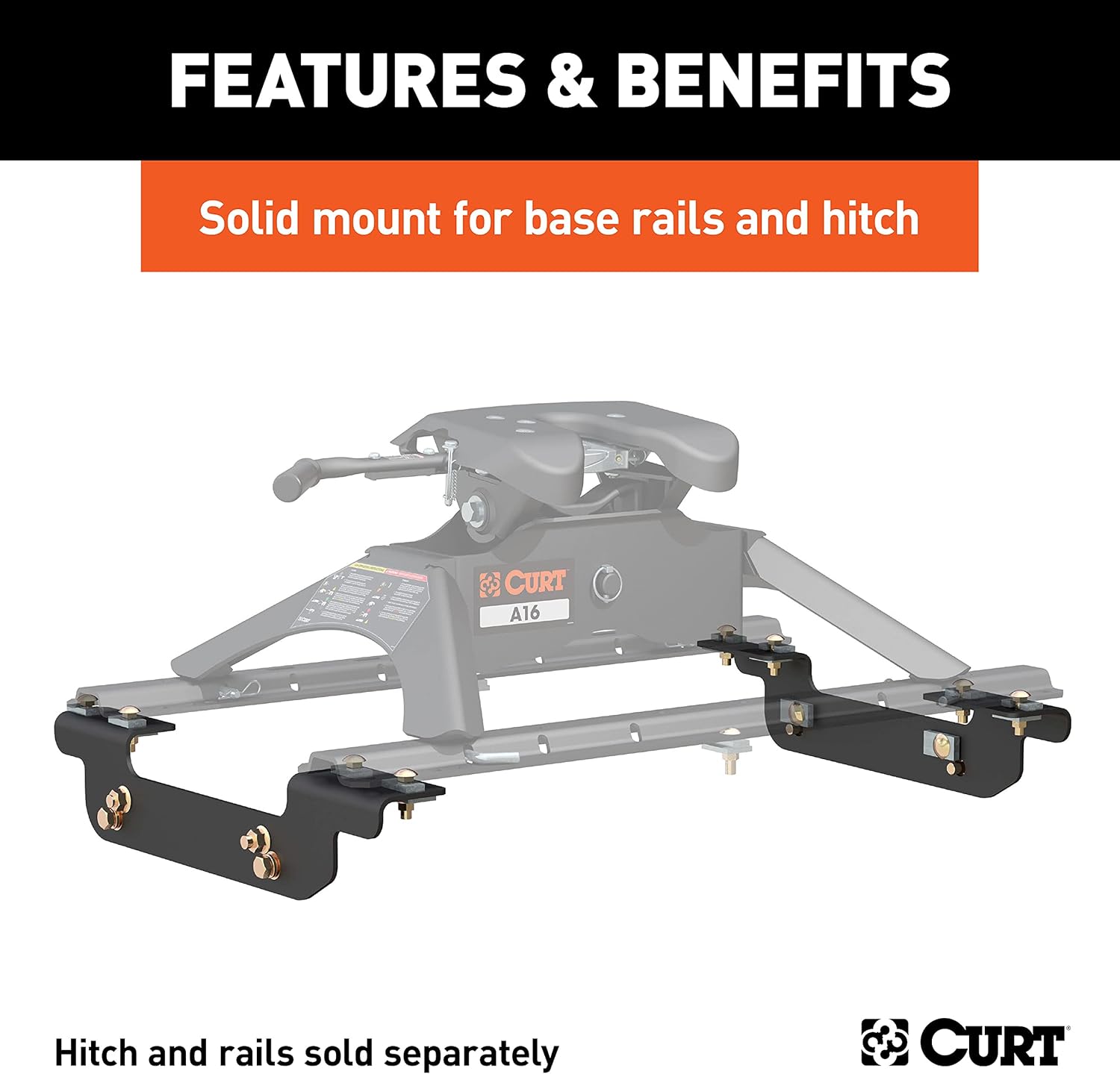 When you purchase a 5th wheel trailer hitch, you expect it to be capable of towing your RV, flatbed or whatever other 5th wheel trailer you own. While a 5th wheel hitch does offer an impressive amount of towing strength, it cannot get far without the proper installation equipment. Engineered for specific makes and models, CURT custom 5th wheel brackets provide the ideal solution for complementing the power of your 5th wheel trailer hitch. A custom 5th wheel bracket features a shape that contours to the frame of your truck and uses pre-drilled holes in the frame wherever possible to make installation quick and easy. Depending on your model of pickup truck, they also reduce or eliminate the need for drilling. These particular custom 5th wheel brackets offer a custom fit for certain model years of the Chevrolet Silverado and GMC Sierra 2500 HD and 3500 HD (except cab and chassis) (see application info to verify fitment). Finished in a durable liquid A-coat, CURT custom 5th wheel brackets are made to last. They include all necessary mounting hardware and are designed to be used in conjunction with CURT industry-standard 5th wheel base rails #16104 or #16204 (base rails sold separately).