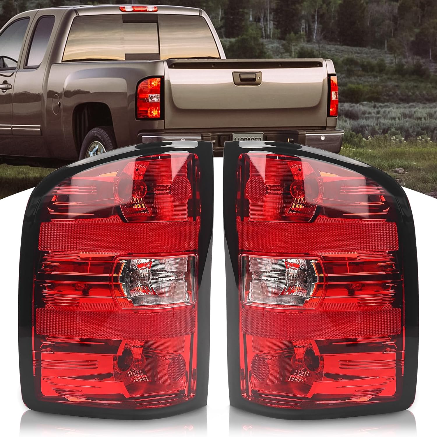 Huray Left Tail light Assembly Compatible with Chevy Silverado 2007-2013 Replacement Silverado 07-13 1500 2500 HD 3500 HD OE Style Rear Brake Lamp (Red Trim)