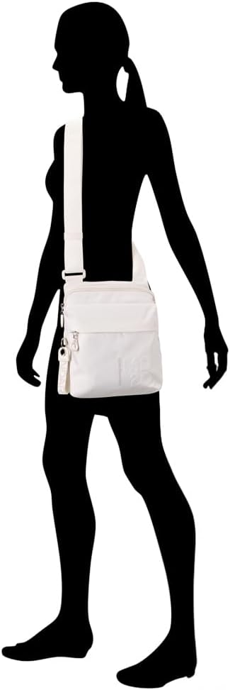 Small mitrix shoulder bag, historic material of the Mandarina Duck brand, famous for its strength, lightness and iridescent effect. It has adjustable shoulder strap and organized inside and outside pockets.