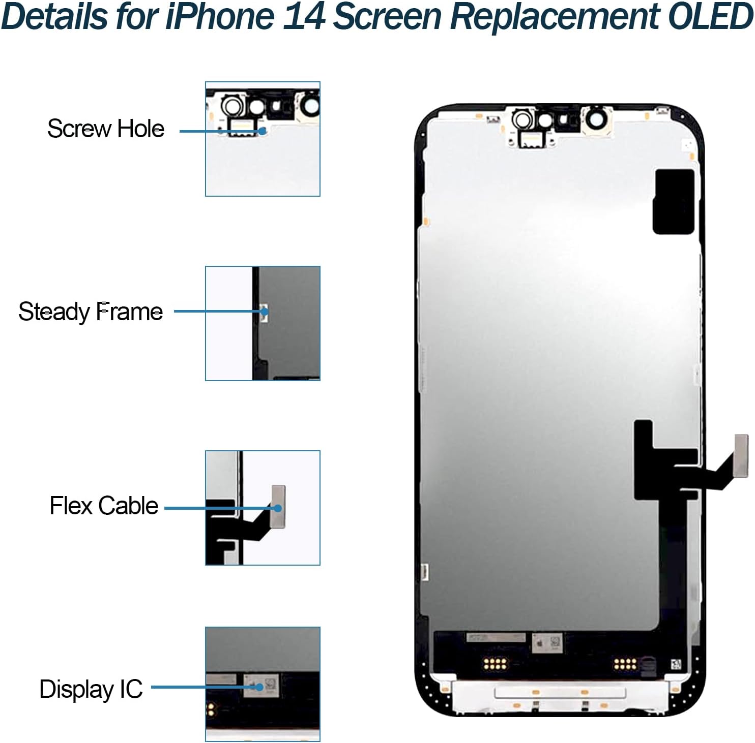 This OLED screen replacement is only for iPhone 14 (Models: A2882, A2649, A2881, A2884, A2883)—confirm your model first for a perfect fit. No pro tools/experience needed: follow YouTube tutorials to replace it at home in 30 minutes. Its self-illuminating OLED saves power (extends battery by hours), delivers vivid colors and sharp details for lifelike frames. Each screen passes strict pre-shipment tests; post-replacement, it keeps stable, like-new display quality with durable, anti-wear performance. It fixes cracked/liquid-damaged screens, blurry/discolored displays, and unresponsive/laggy touch in minutes.