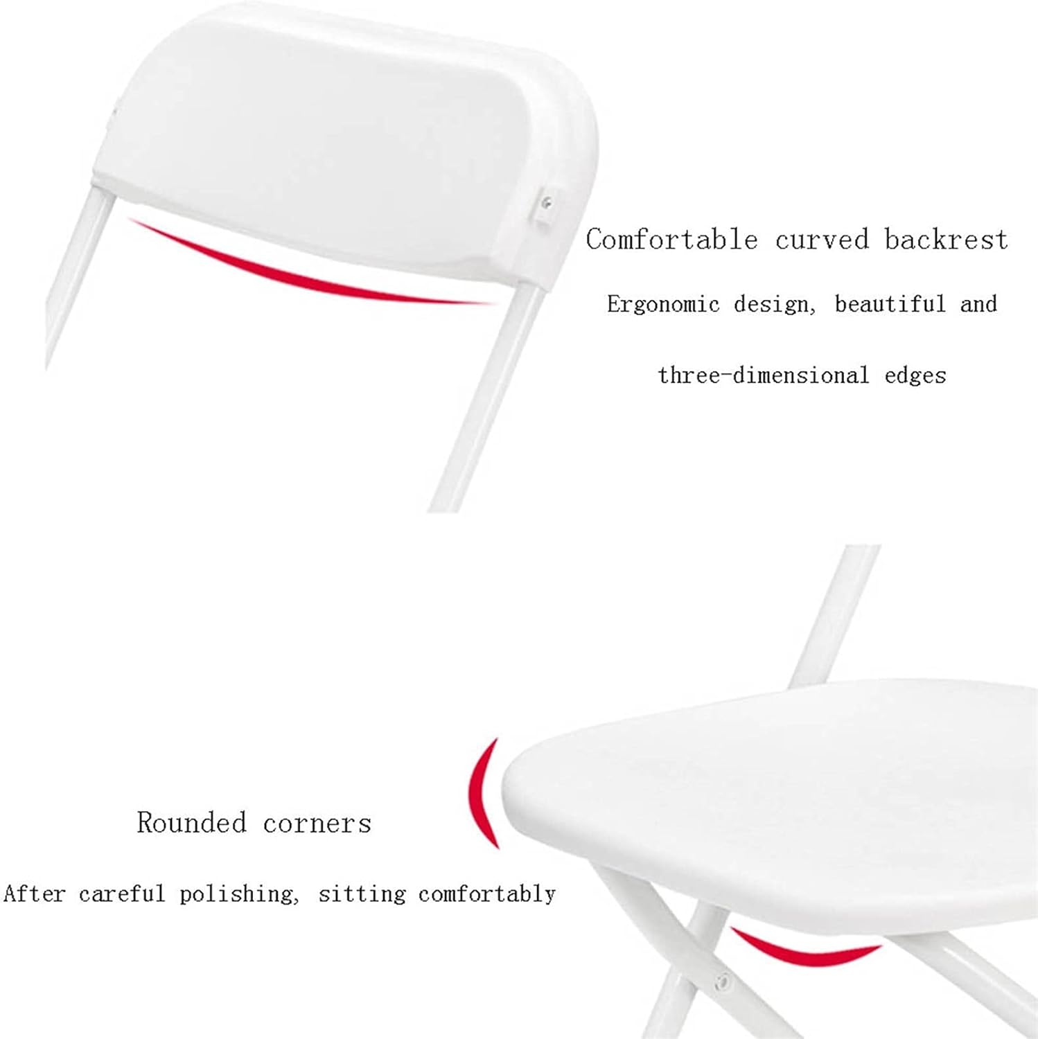 Name: Size: 400*400*860mm color: White Material: PP plastic Features: Made of plastic material, good toughness, wear-resistant and heat-resistant Curved chair back design, comfortable sitting, strong practicability Triangular support on both sides the chair, bearing capacity, stable force Non-slip foot pad non-slip wear-resistant, beautiful practical